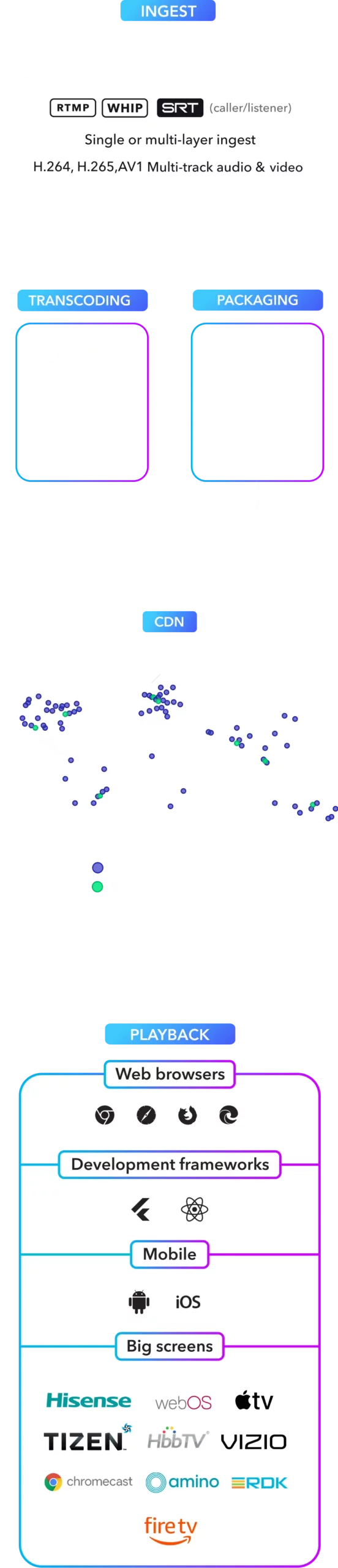 Increase viewer engagement and maximize ROI with our live streaming solution that meets every latency requirement globally, from ultra-low to broadcast-level latency.