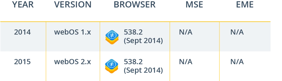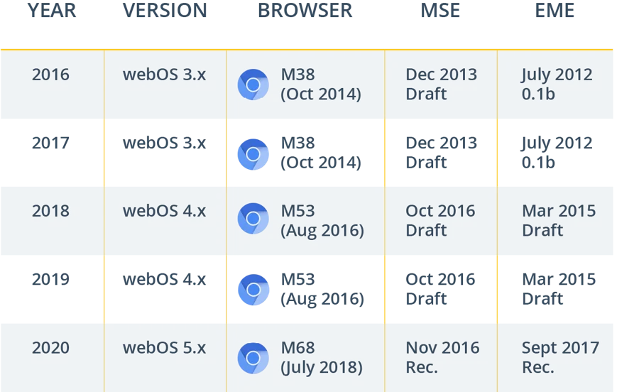 Therefore, it is highly advised for you to leverage MSE/EME where available (webOS 3.x and above) to ensure a consistent and reliable video playback quality.