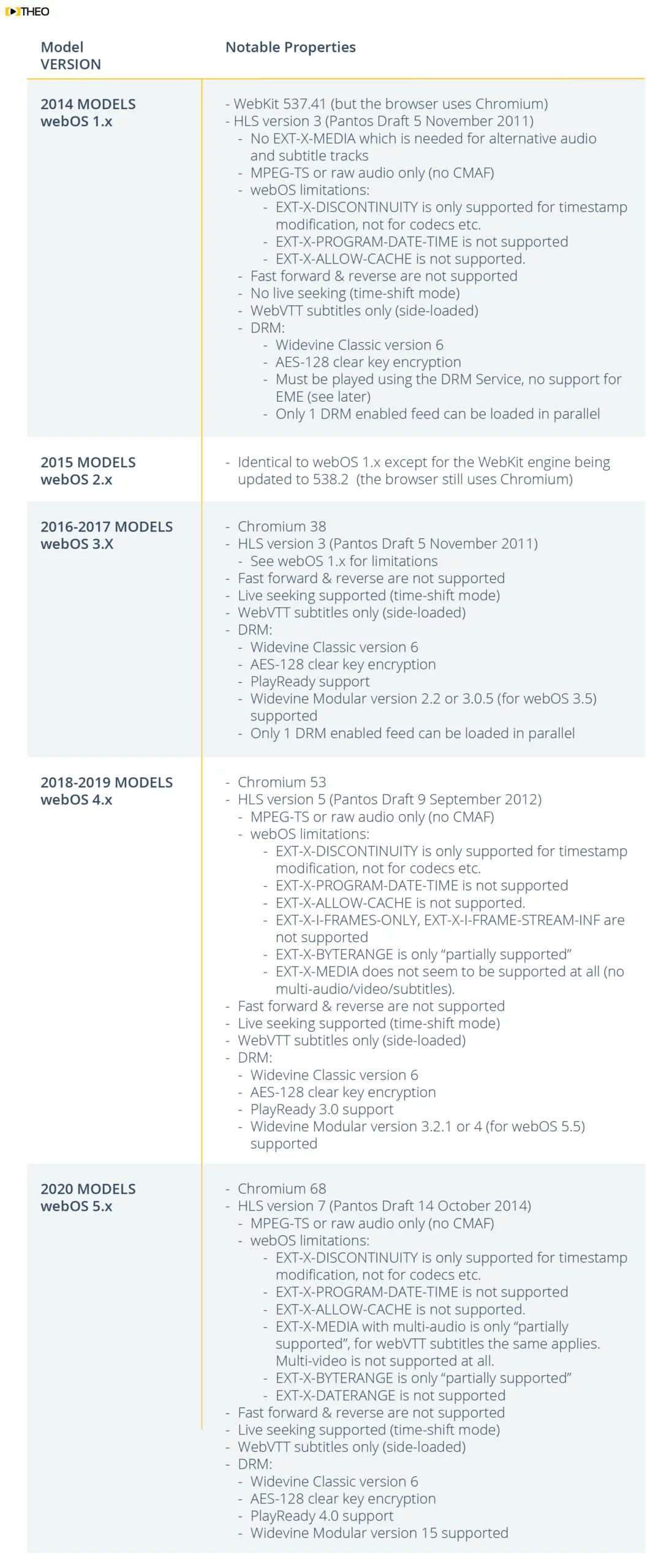 - Even HLS support is basic. Most modern webOS 5 TVs support HLS version 7 (which is Pantos-draft 14, straight out of 2014). The 4.x version of the platform only supports HLS version 5, and if you’re unlucky, you are stuck on HLS version 3 for all older devices.