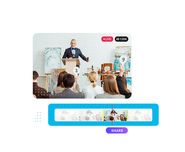 We uphold the integrity of live auctions by providing necessary features for resolving bid timing disputes. One such feature is live clipping, which allows you to create and share clips from your auction within seconds of airing.