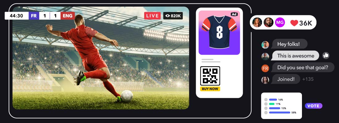 Live stream across web, mobile, set-top-boxes and smart TVs, placing your audience directly in the action.